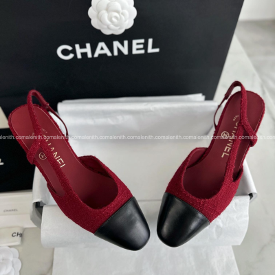 Chanel 23K Collection – Burgundy Tweed Slingback Heels