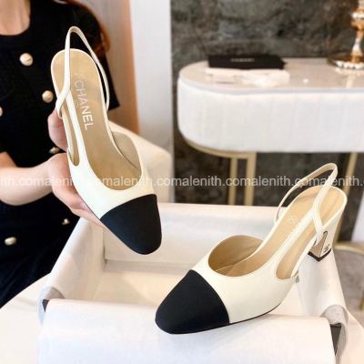 White Lambskin with Black Toe High Heel Slingback