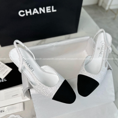 Chanel Black and White Tweed High Heel Slingback