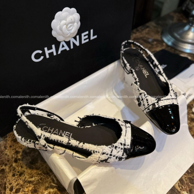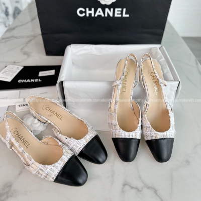 Chanel 23 White Tweed High Heel Slingback Sandals