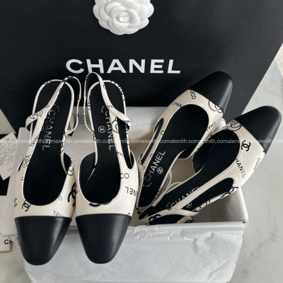 Chanel 22P Lace Letter Beige High Heel Slingback